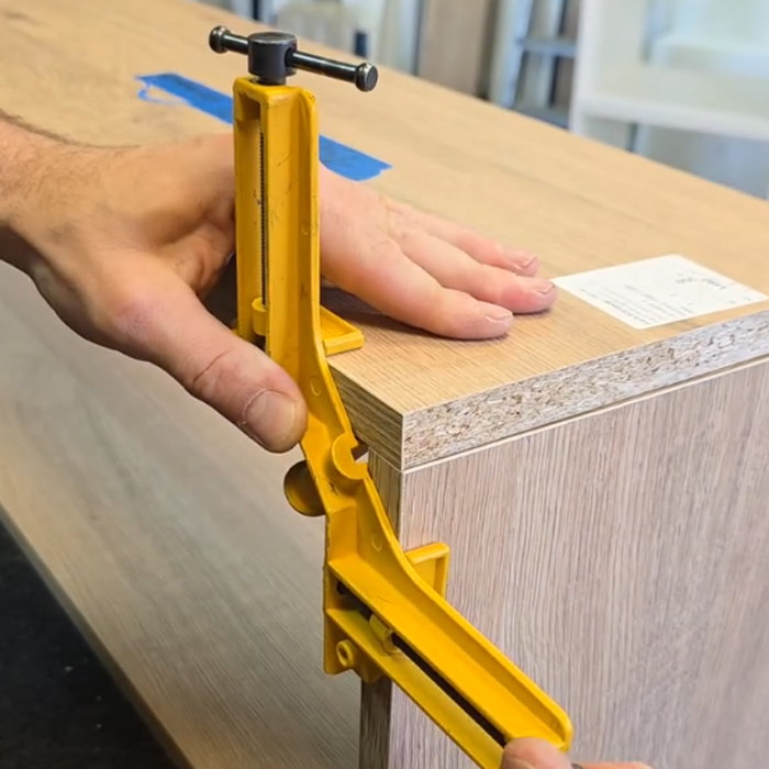 Many models include two independent clamping screws to secure both adjoining pieces simultaneously, providing superior stability during glue-up or fastening.