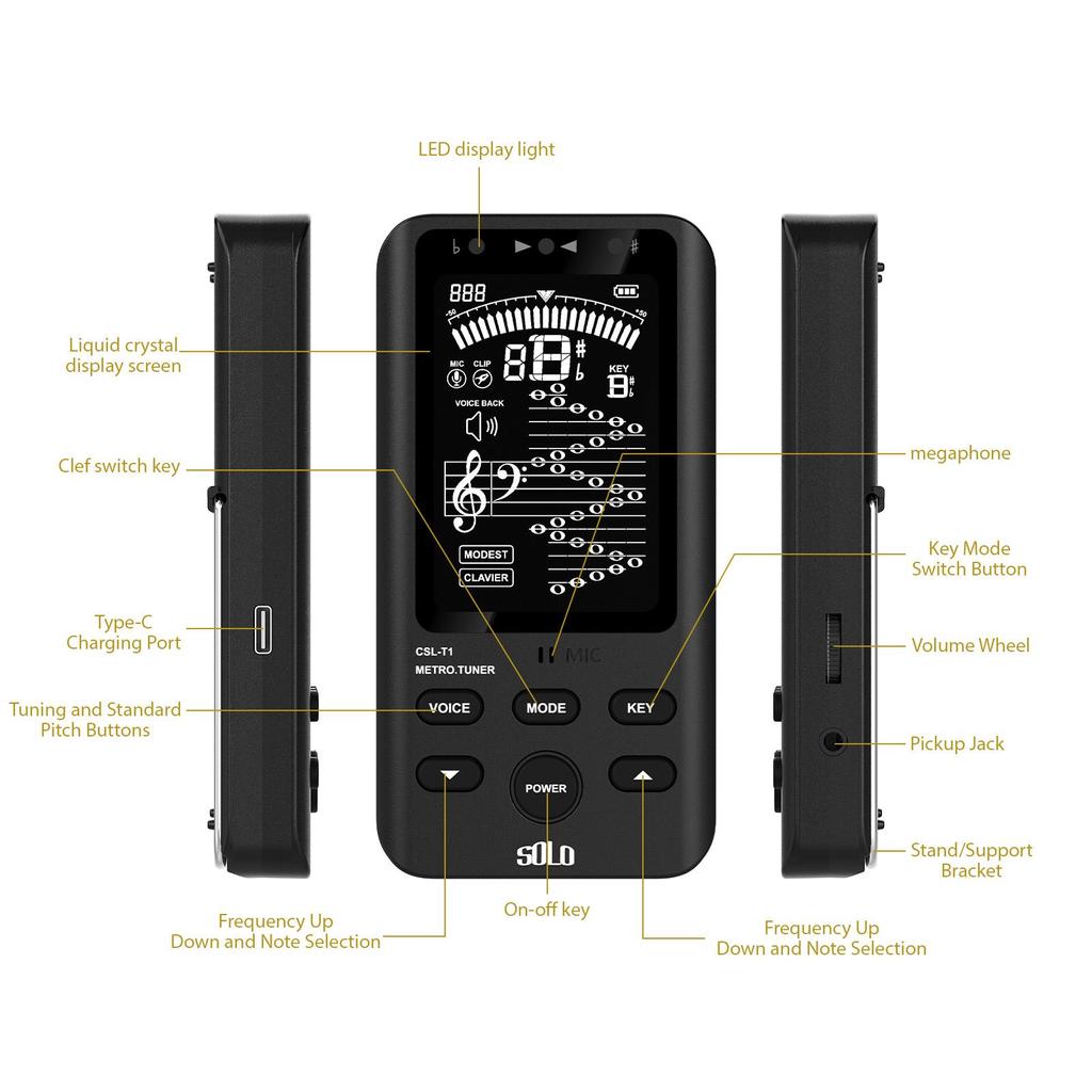 Supports twelve-tone equal temperament tuning, making it suitable for a wide range of instruments like string, wind, vocal, violin, and more. It also includes a standard sound mode, allowing you to adjust the volume and automatically detect the pitch of your sound, providing real-time switching and pitch comparison.